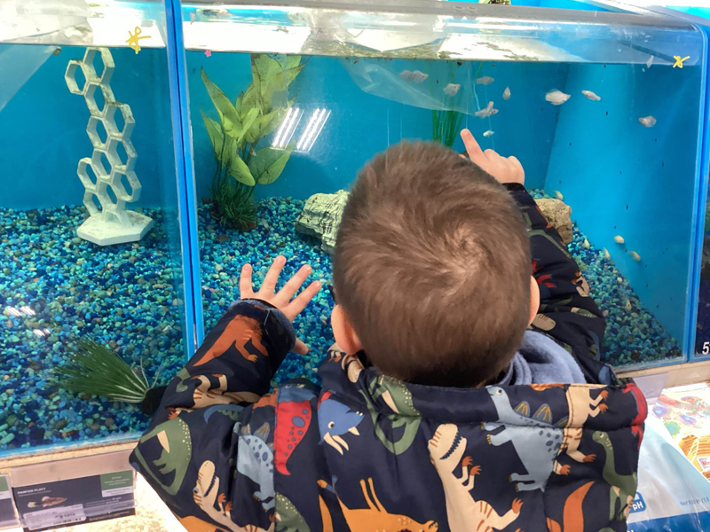 Fear is a valid response and should not be pushed. Start small and move slowly. Begin with pictures or videos of animals. Visit aquariums where your child can observe fish from a safe distance. Try smaller, caged pets like hamsters or guinea pigs that stay contained. Never force interaction.